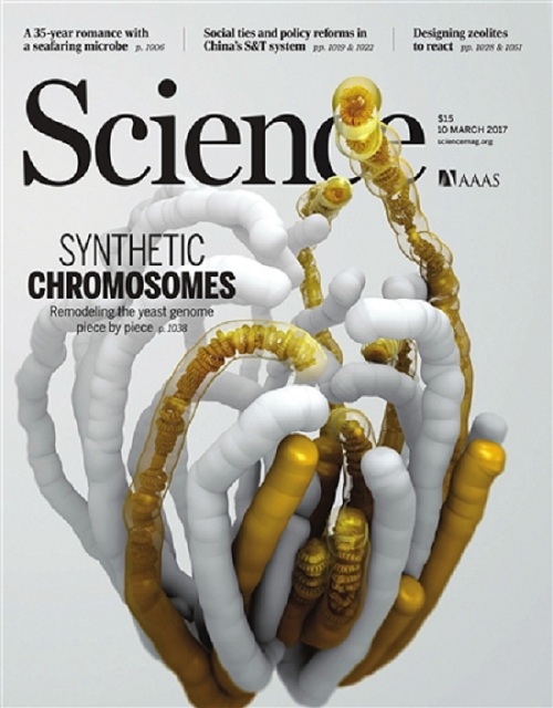 科学家们已经完成了原核细胞的合成,开始向真核生物的合成进军。美国、中国、英国、法国、澳大利亚、新加坡等多国研究机构参与、协作的酿酒酵母基因组合成计划(Sc2.0计划)是这项研究的标志性国际合作项目。本期《科学》封面文章刊登的就是这项计划的重要进展,中国科学家们完成了真核生物酿酒酵母4条染色体的从头设计与化学合成,打破了非生命物质与生命的界限,开启了“设计生命、再造生命和重塑生命”的进程。要知道,真核生物DNA既丰富又复杂,即使相对简单的酿酒酵母每条染色体也要包含几十万碱基对信息,此前国际同行奋斗多年才合成了1条。