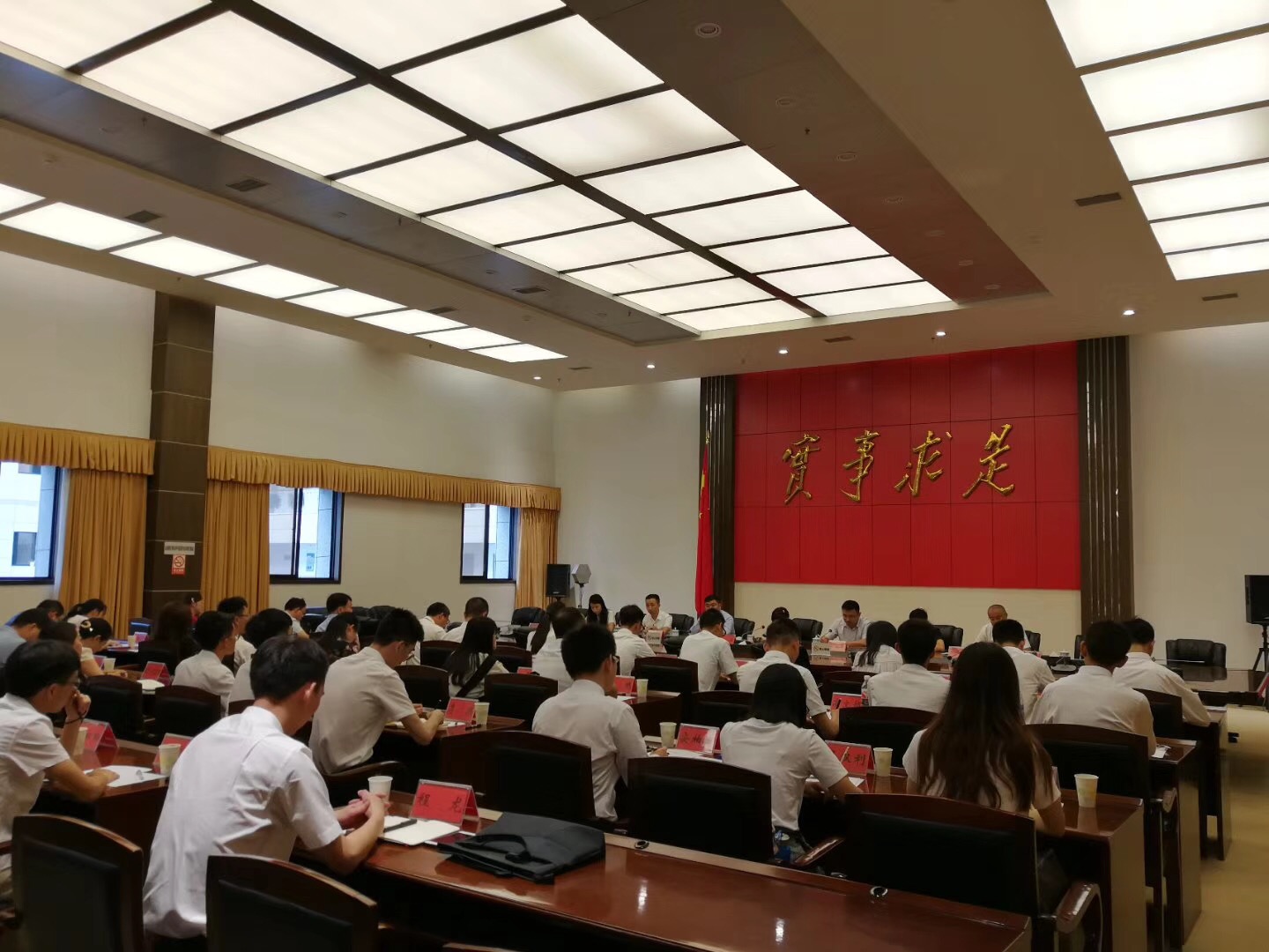 本站讯(通讯员付常辉 摄影王旗)2018年7月19日天津大学学生赴贵阳市人民政府暑期实习活动启动仪式在市政府C区420会议室举行。贵阳市人民政府副秘书长宋叙言、宗士强,天津大学智能与计算学部党委副书记赵娜、数学学院党委副书记韩旭,市政府各接收单位人事部负责同志、实习学生等50余人参加了活动。启动仪式由市政府办公厅机关党委书记余洁主持。来自天津大学23名学生将分赴贵阳市发改委、工信委、科技局、教育局等18个部门开展“励行计划”实习实践活动,该活动旨在进一步鼓励在校生增强对国情、社情、民情的了解,自觉把个人理想同国家与社会需要紧密结合起来,激发高校毕业生到西部、基层就业创业的热情。