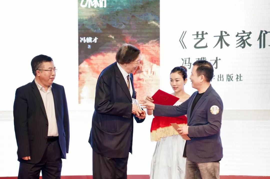 本站讯 4月24日下午,2020年度春风悦读榜九大年度奖项在杭州揭晓,冯今年的春风悦读盛典,共揭晓了九项年度大奖。其中,最重磅的“白金图书奖”,被冯骥才先生的长篇小说《艺术家们》摘得。著名作家、评论家,中国作协副主席、书记处书记李敬泽,与浙江出版集团党委副书记、浙江出版传媒股份有限公司总经理虞汉胤,共同揭晓了这项大奖,并为冯骥才先生和人民文学出版社社长臧永清颁奖。