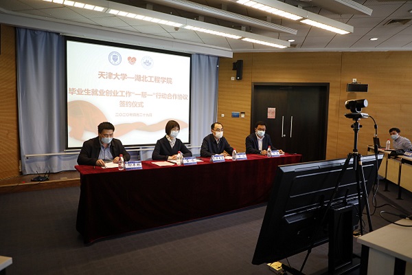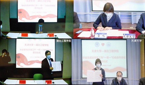 本站讯(通讯员 李华)为贯彻落实习近平总书记重要指示批示精神和党中央、国务院关于做好“稳就业”工作的决策部署,助力湖北高校毕业生顺利就业创业,根据教育部毕业生就业创业工作“一帮一”行动工作要求,4月29日下午,天津大学与湖北工程学院通过视频会议的形式,举行两校合作协议云签约仪式。天津大学党委副书记雷鸣、湖北工程学院副校长丁远坤,两校相关职能部门、学院负责人参加会议。会议由天津大学就业指导中心主任柳丰林主持。