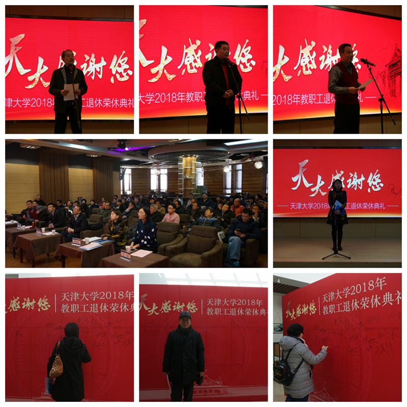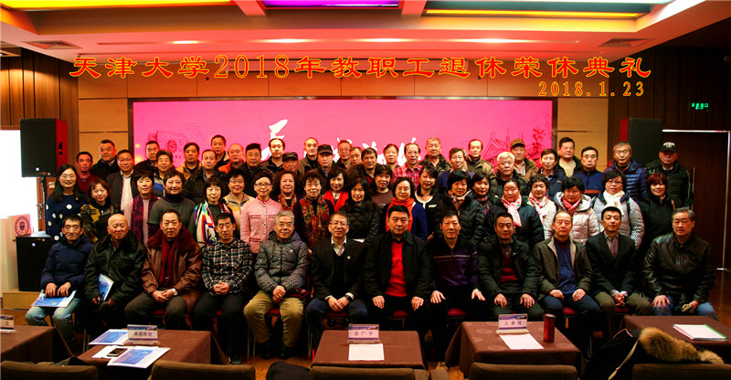 本站讯(通讯员 张永柒)新年伊始,瑞雪初晴,天津大学2018年退休教职工荣休典礼于1月23日在卫津路校区教职工文化活动中心多功能厅举行。今年2月即将退休的学校60余名教职工及学校人事处、离退休处、校工会等部门负责人参加了荣休典礼。退休教职工代表作了发言。大家欢聚一堂,回首往昔岁月,展望美好未来,畅想天大愿景,会场内洋溢着欢乐喜庆的气氛。校党委副书记、纪委书记、工会主席孙广平出席活动并讲话。
