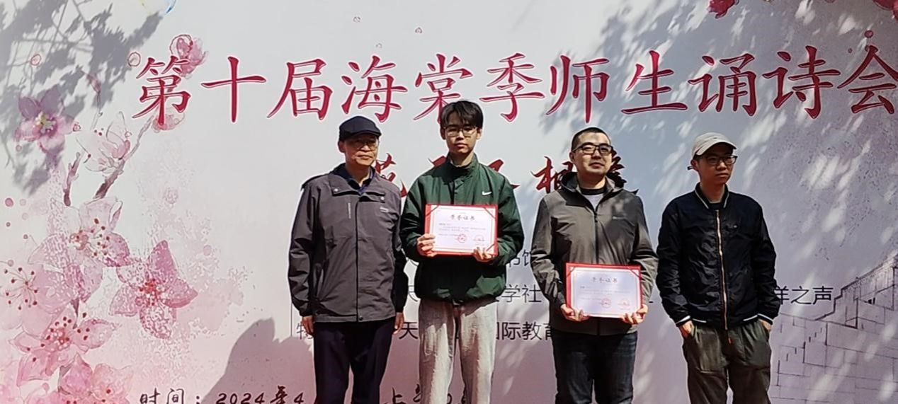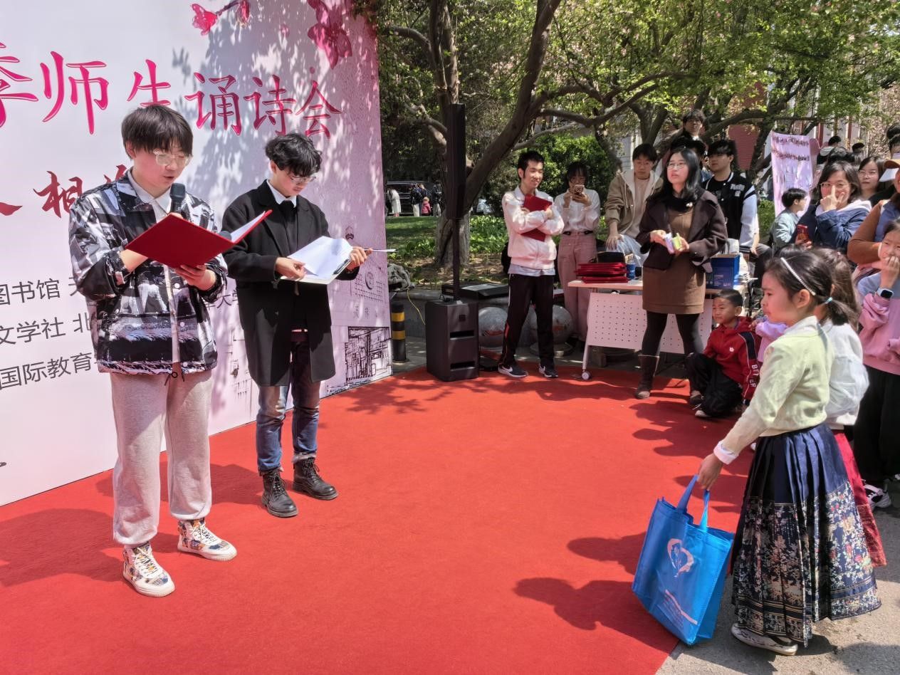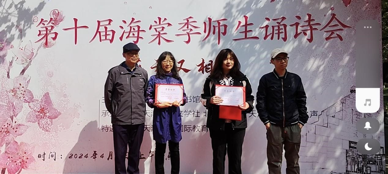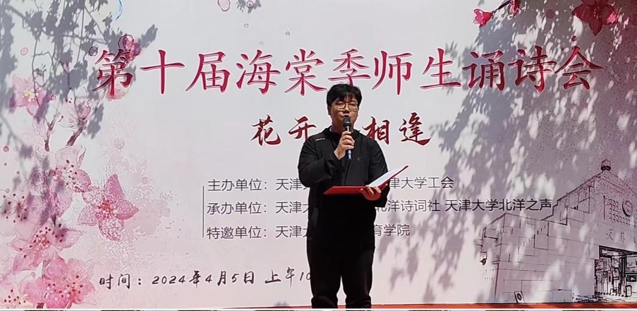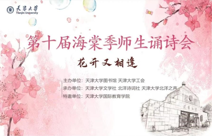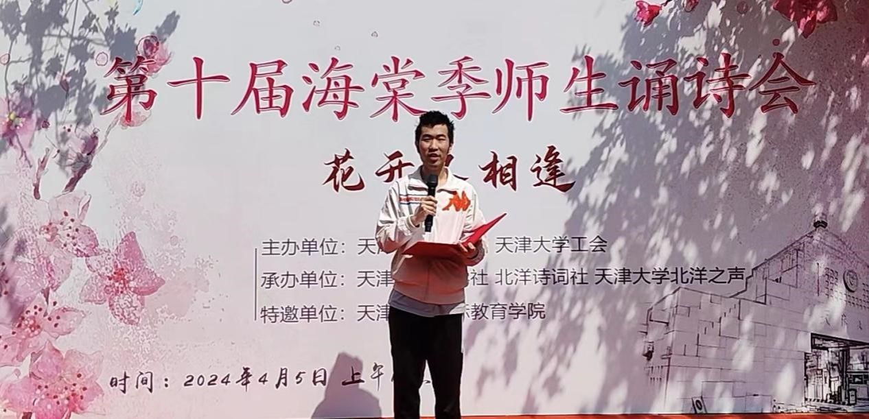 本站讯(通讯员 钱欣瑞)“等闲识得东风面,万紫千红总是春”。为增进学校师生情谊,增强文化自信,4月5日上午,由天津大学图书馆、天津大学工会主办,天津大学文学社、北洋诗词社、天津大学北洋之声协办的第十届海棠季诵诗会在卫津路校区铭德道成功举办。活动特别邀请到国际教育学院师生代表共襄盛举。天津大学图书馆的钱欣瑞老师主持了此次诵诗会。