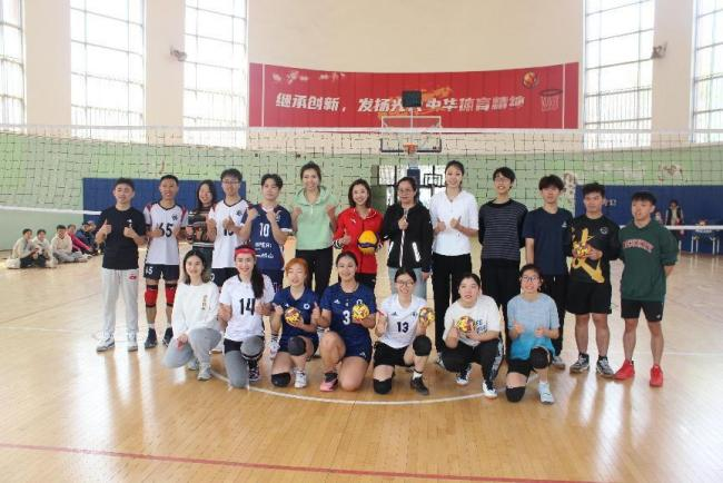 冠军队员们还现场讲解了排球技巧、动作要点和战术配合等相关知识,亲自指导我校男子、女子排球队和排球协会以及建筑学院排球队的队员们,并进行训练互动。