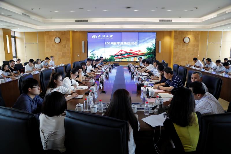 本站讯(记者 张华 摄影 唐蒙)7月2日,在北洋园校区行政楼A415会议室,天津大学召开了2018届毕业生代表座谈会,听取毕业生对学校各方面发展的意见和建议。校长钟登华,副校长张凤宝、王树新,党委常委、组织部部长、统战部部长赵美蓉,党委常委、宣传部部长贾启君出席了座谈会。党办校办、组织部、宣传部、学工部、校团委、研究生院、教务处、科研院、国际处、校友基金会、后保部、保卫处、图书馆、场馆中心、信网中心等相关部门负责人参加了会议。座谈会由学工部部长王寒主持。