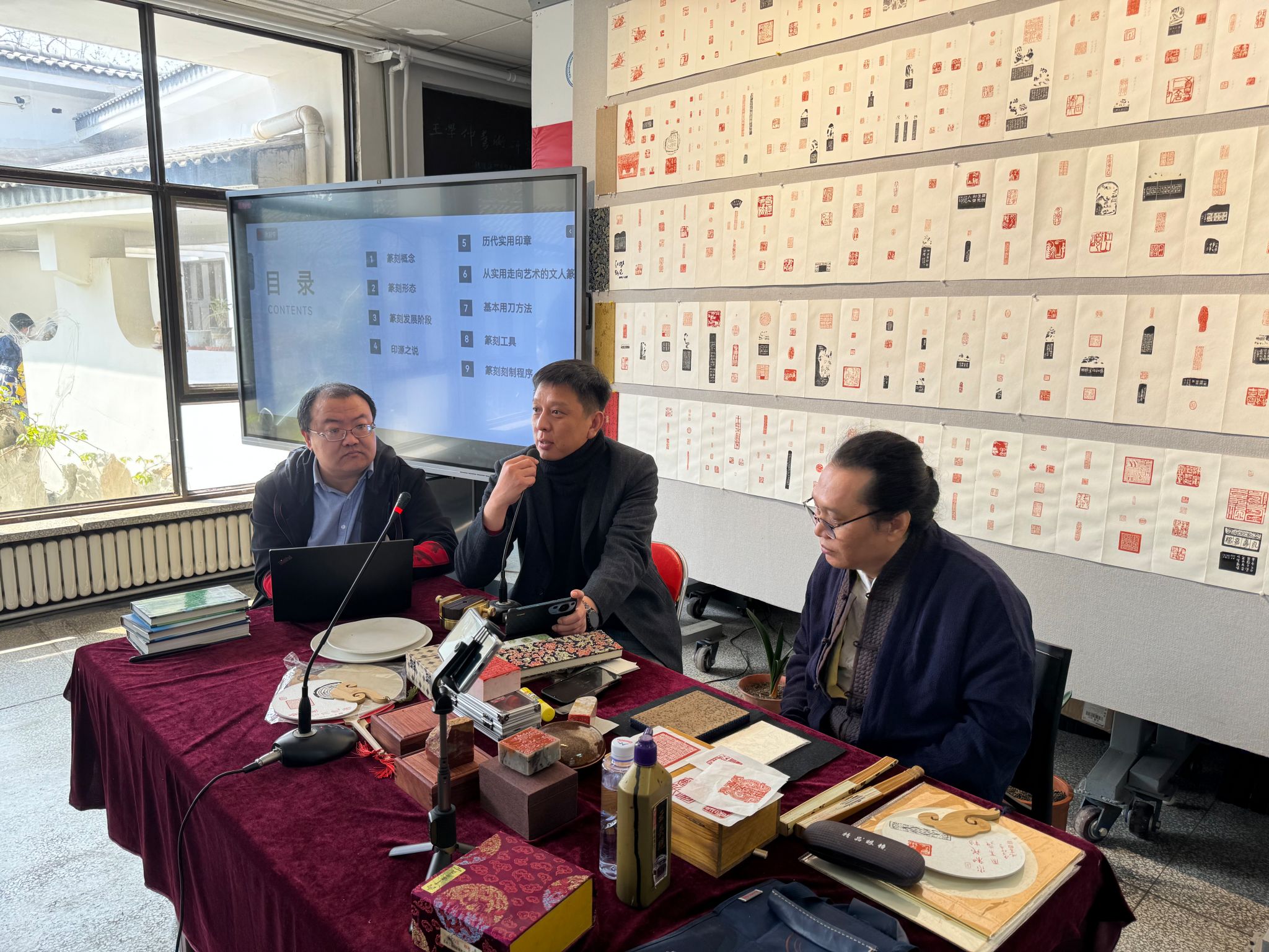 在“北洋印跡·篆刻美学艺术展”现场,以天津大学校训、校歌、校史为主题的篆刻原创作品挂满展厅。王学仲艺术研究所所长孙列、文字学领域专家陈鑫海、篆刻家刘砚以北洋文脉传承与篆刻艺术相会为主线,共同探讨篆刻历史、理论与实践。天大师生与来访观众沉浸式感受篆刻艺术的深厚底蕴,深入了解这门古老艺术的独特魅力,并零距离观摩和体验篆刻技法。