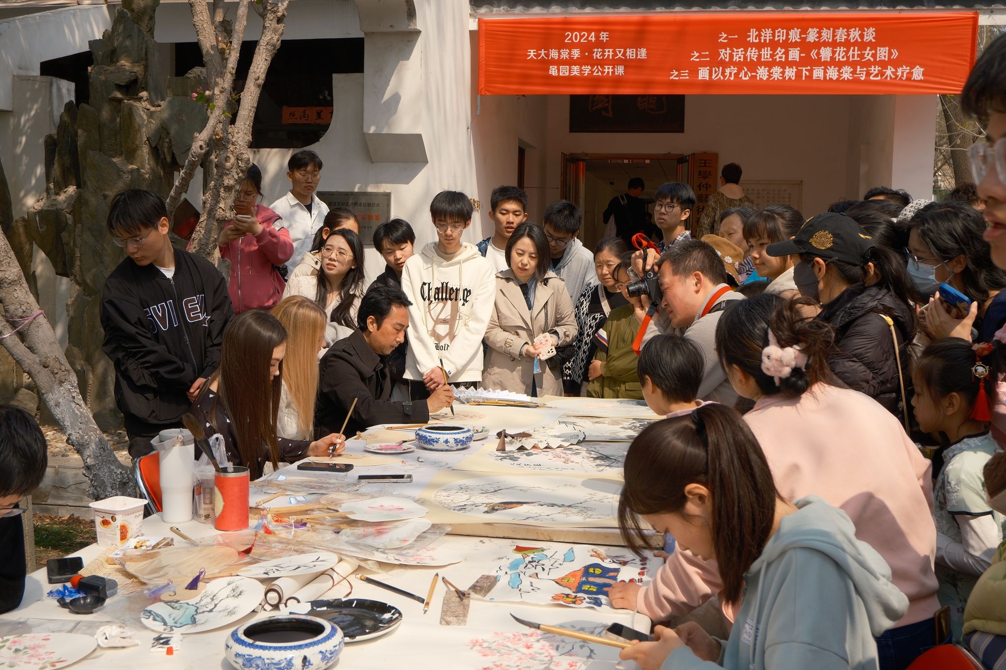 本站讯(供稿:人文艺术学院)4月5日,天津大学“花开又相逢”海棠季拉开帷幕,在王学仲艺术研究所,充满人文艺术气息与文化探索乐趣的美学公开课轮番上演。