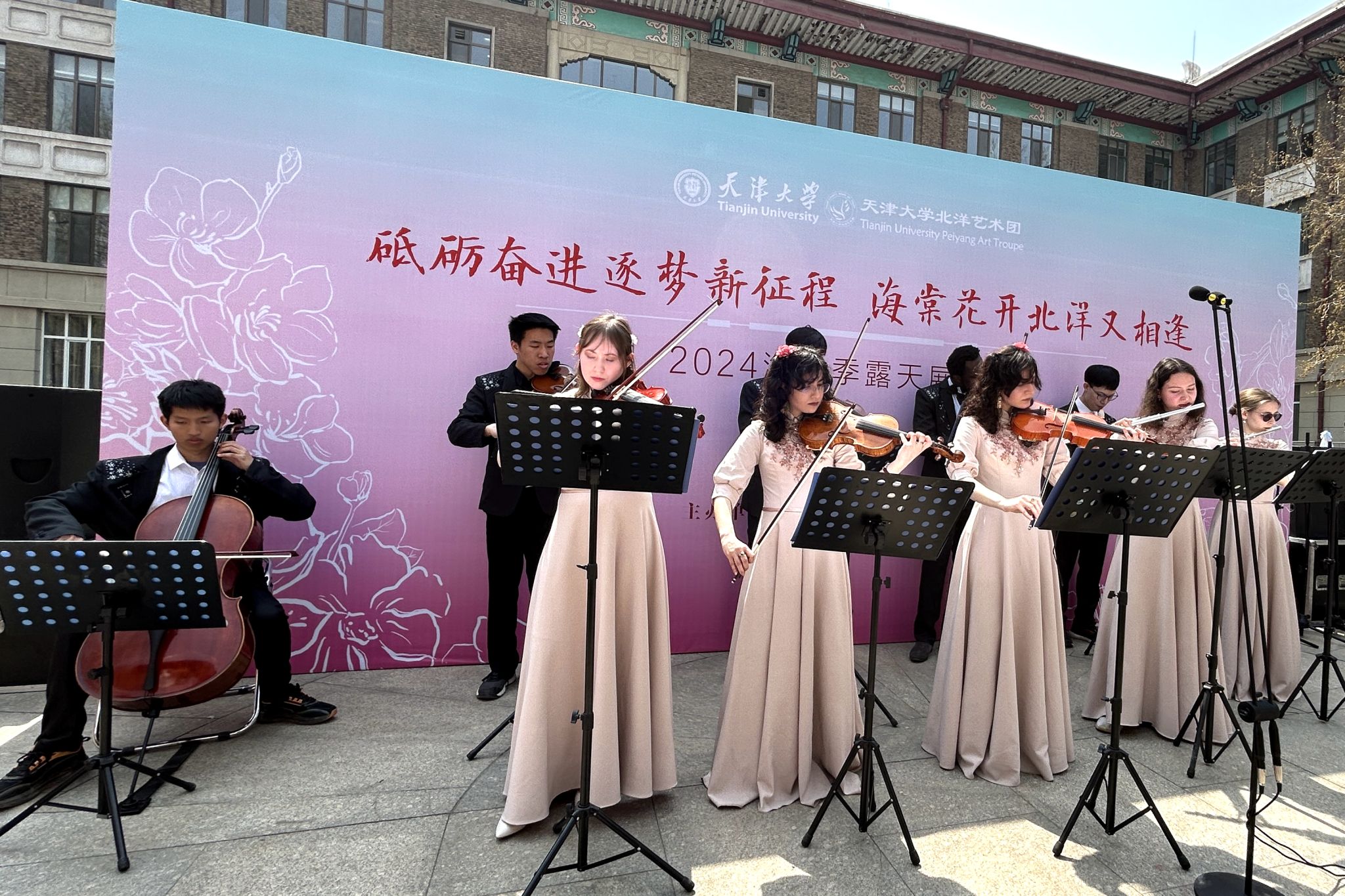 整个演出从上午11点开始。首先登台的是《春》,这是四季选段中的一首经典曲目,由维瓦尔弟创作。留学生的热情演绎,让观众们仿佛置身于春天的花海之中。