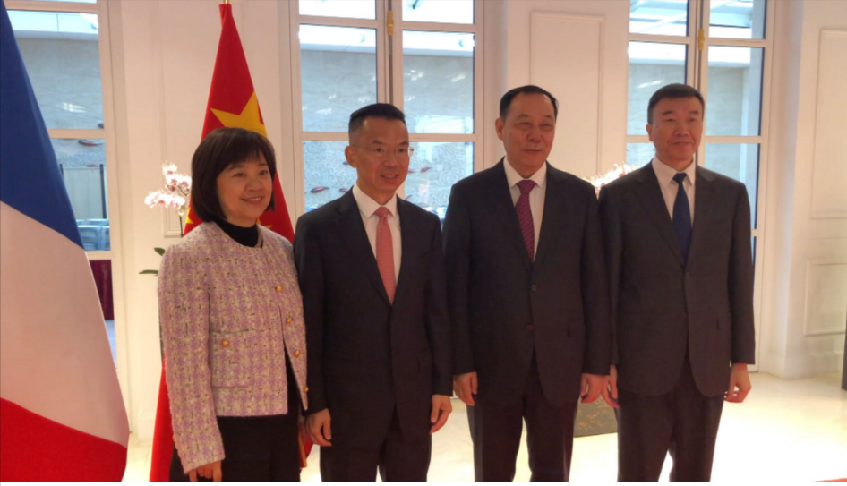 访问巴黎期间,应中国驻法国大使馆邀请,杨贤金参加了国庆招待会,与卢沙野大使和周家贵教育公参就进一步推动天津大学与法国高校,特别是巴黎综合理工大学等的合作进行了沟通交流。杨贤金一行访问了华为法国研究所,双方就在数学、物理与计算领域开展人才联合培养,以及海外实习实训进行探讨。