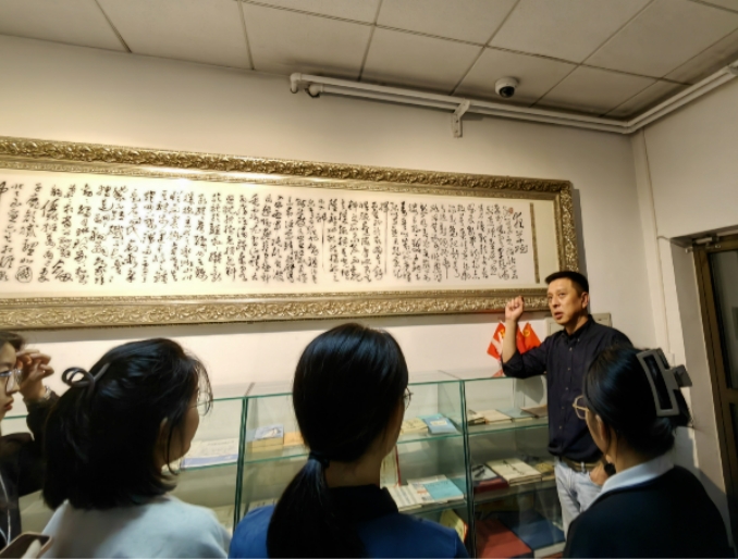 10月15日、21日,刘珺先后组织2023级新生参观了天津美术馆、博物馆,天津大学卫津路校区王研所和图书馆,与来访学院的清华大学学生、我校建筑学院等专业学生开展深入交流。期间,刘珺带领同学们赏析了部分文物和经典书画作品,并介绍了他对书画艺术和心理疗愈的研究。他希望能够通过人文、艺术、心理等学科的交叉,让书画艺术发挥释放情绪、缓解压力、抚慰心灵的疗愈作用,推动中华优秀传统文化创造性转化和创新性发展。