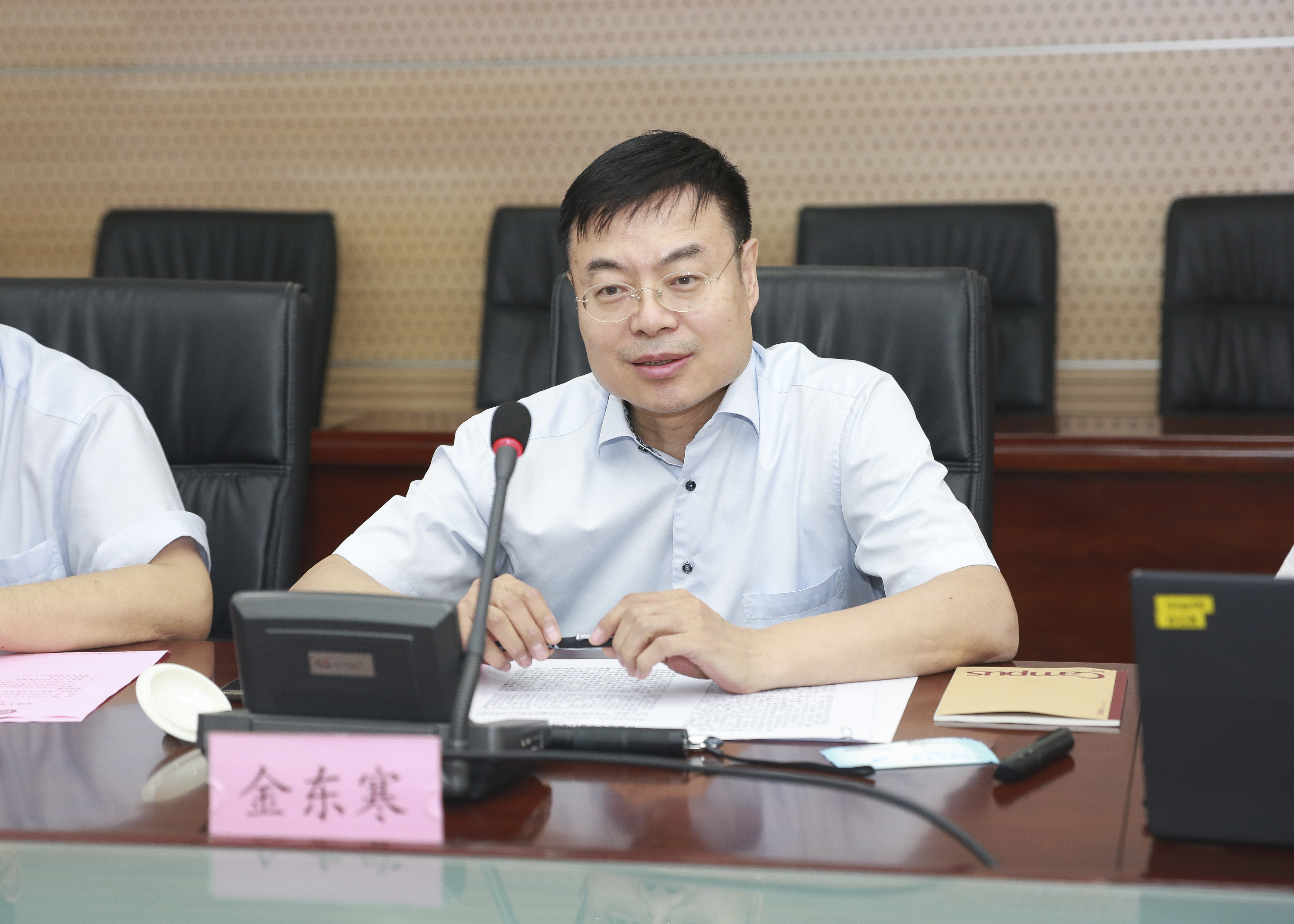 本站讯(党办校办供稿)6月10日,中国工程院院士、天津大学校长金东寒,党委常委、副校长胡文平一行访问集美大学,并就深入推进天津大学对口支持集美大学共建协议事项进行座谈交流。集美大学党委副书记、校长李清彪,党委常委、副校长于洪亮等出席座谈会。
