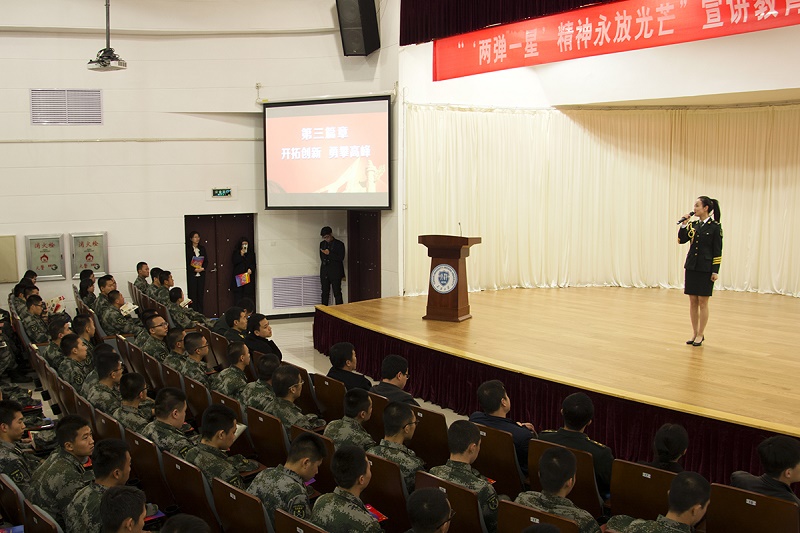 宣讲员讲述了我国核武器事业发展的辉煌历程,阐述了“两弹一星”精神的重要内涵和现实意义。深深感动师生的是老一辈科研人员那种不畏生活艰辛、立志打破国外技术封锁、勇攀科技高峰的精神,也正因他们的不懈努力,才开启了我国“两弹一星”创业史的黄金年代。