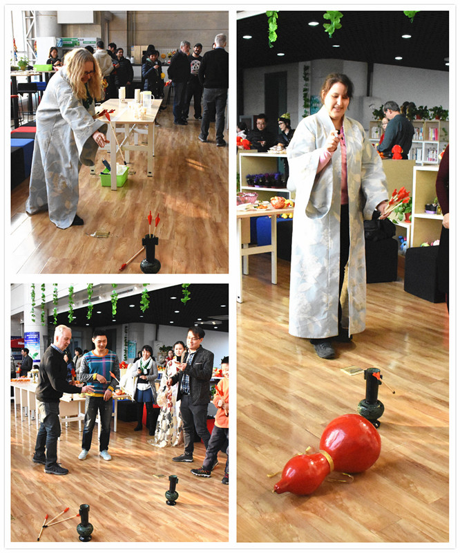 为了更好的弘扬中国文化,联欢会为中外教师们准备了包括投壶、茶道、面塑等多种中华传统游戏和表演,中外教师们在观看精彩的表演之余,还纷纷动手参与体验。联欢会现场欢声笑语、气氛热烈。外籍教师感受到了传统中国文化的魅力。