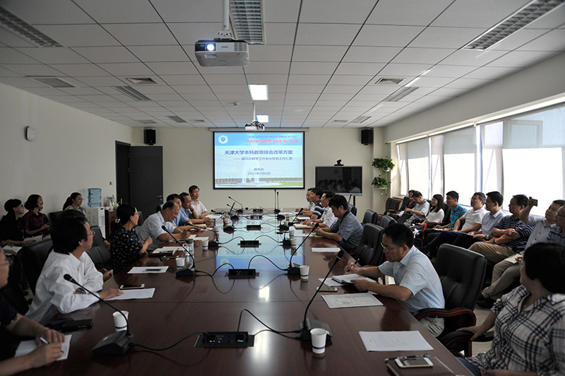 本站讯(通讯员 刘坤 路明月)9月6日,天津大学本科教育综合改革方案宣讲会在机械学院举行。机械学院党委书记宋轶民、院长王天友等院领导班子成员,学院各学科主任,各专业本科责任教授,各学科研究生责任教授,本科教学团队责任岗教师,本科生及研究生教务员等30余人参加宣讲会。教务处处长白海力,副处长靳楠、谷钰、赵伟及教务处相关工作人员参加宣讲。机械学院副院长曹树谦主持会议。