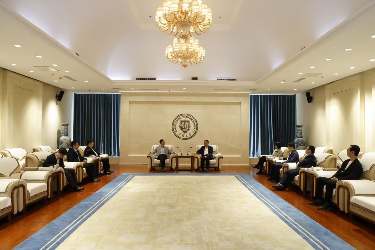 本站讯(通讯员 焦德芳;摄影 于福旺)4月22日,中国印钞造币集团有限公司党委书记、董事长杨立杰一行来访我校,校党委书记杨贤金在北洋园校区会见来宾。集团技术总监刘永江,校党委常务副书记雷鸣参加会见。