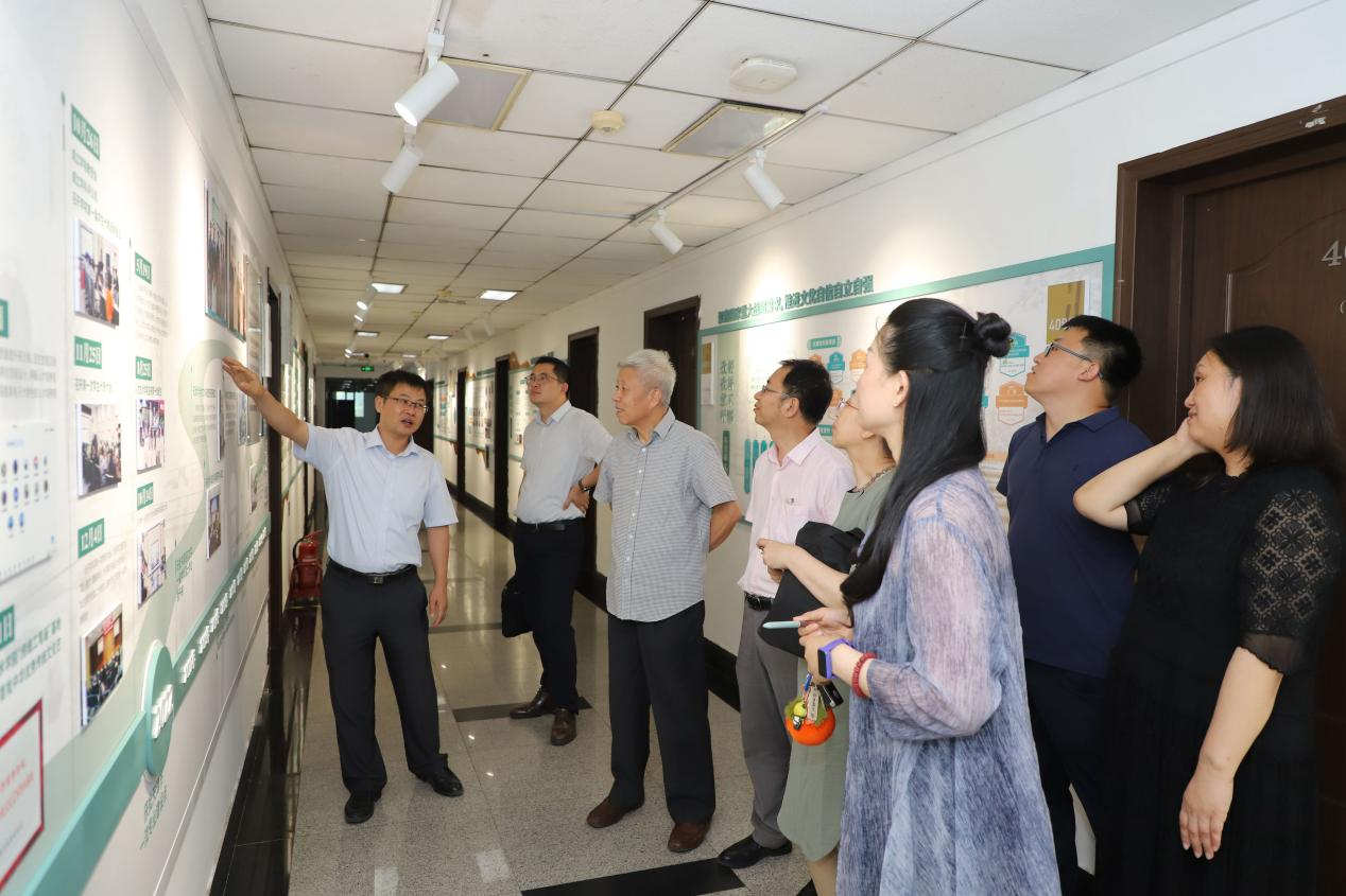 在人文艺术学院院史馆,人文艺术学院党委副书记、副院长王用源,向专家组做现场参观讲解,并汇报了院史馆的建设和使用情况。人文艺术学院院史馆建设旨在一个集展示、研究、教育、交流为一体的综合性文化艺术展陈平台,灵活利用楼宇墙面展陈空间,开辟形成新形态的宣传展示平台——院史展览长廊。长廊全长40米,分为多个展区,整体造型突显人文精神,结合每个版块的丰富内容,以图文并茂的形式展示学院的“一路走来”和丰硕成果。