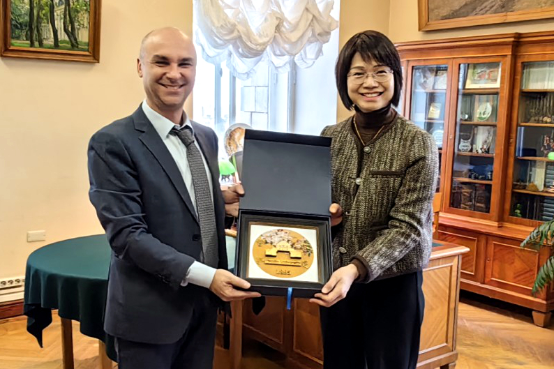 24日上午,代表团拜会了我国驻俄罗斯大使馆,曹士海公参和教育处有关负责同志与代表团会见会谈。雷鸣首先介绍了天津大学对俄合作情况及此次访问白俄罗斯、俄罗斯院校情况。她表示,学校致力于发展与俄罗斯及欧洲高校的深入合作,进一步扩大欧洲朋友圈,加强全面合作与来华留学工作。曹士海公参介绍了使馆及教育处基本情况,他表示,未来希望学校发挥学科特色,依托与莫斯科国立大学等高校合作平台和渠道,推动与更多俄罗斯高校的深度交流与合作。
