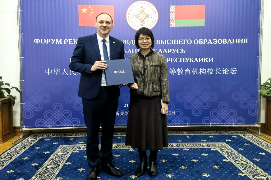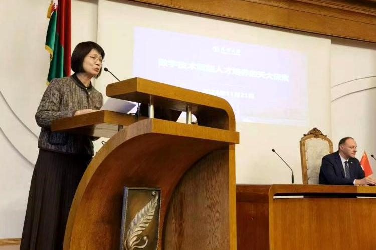 在21日下午举办的中白大学校长论坛上,党委副书记雷鸣围绕“数字技术在组织教育过程中的应用”主题做专题报告,分享我校应对数字化时代机遇和挑战的探索与实践,并在论坛发布“天大倡议”,倡议中白联盟高校共建共享线上教学资源共享平台,探索数字学分互认,拓展联盟高校各类长短期双向交流项目,搭建联盟科研合作平台,汇聚联盟优势力量,聚焦基础科学与工程领域开展研究,为应对全球共同挑战做出贡献。22日上午,天津大学代表团随联盟高校代表团共同参观访问了“巨石”中白工业园,深入对接白俄罗斯中资企业和中白工业园管委会。