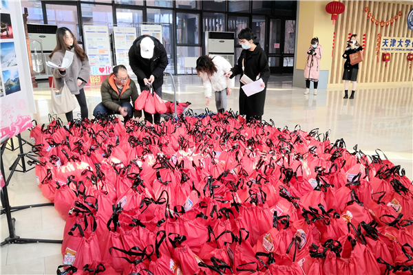 在校园之外,母校的祝福也随着一包包“新春福袋”飞向全国各地:天津大学为近600名在全国各地基层工作的选调生寄去了新春福袋。福袋里包含春联、福字、窗花和慰问信,这些春联由辅导员亲手题写,“天下同心胸怀家国强盛世 大地迎春青苗破土展宏图”——情真意切的笔墨,传递着天大人对这些正在祖国最需要的地方建功立业的校友们的祝福和牵挂。
