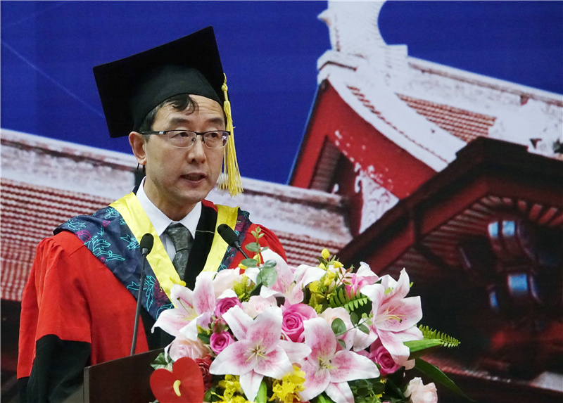 一是要不忘初心,坚持梦想砥砺前行。走出学校初入职场,会发现外界对你的评价体系发生了变化,象牙塔里的评价较为简单、可控,而社会中的评价内容更加多元,评价层次更加丰富。很多人对于生活和世界的敏锐观感将逐渐钝化,这将使你们陷入眼前的琐事而无法看见远方的路。在这样的纷繁变化中,如何保持自己的初心,如何坚持自己的理想将成为非常重要的议题。希望你们可以始终保持旺盛的求知欲和好奇心,如孩童般生活在知识的海洋里,去感受新鲜与充实,时刻提醒自己,不要沉迷眼前,耽于安逸。学会不忘初心,当遇到困难险阻时,迎难而上,绝不退缩。相信几年的研究生生活已经锻炼出你们对于科学精益求精的态度,在今后的工作中,希望你们能一直保持对自我的严格要求,保持对创新的渴望,将严谨治学、矢志创新的天大品格发扬光大。