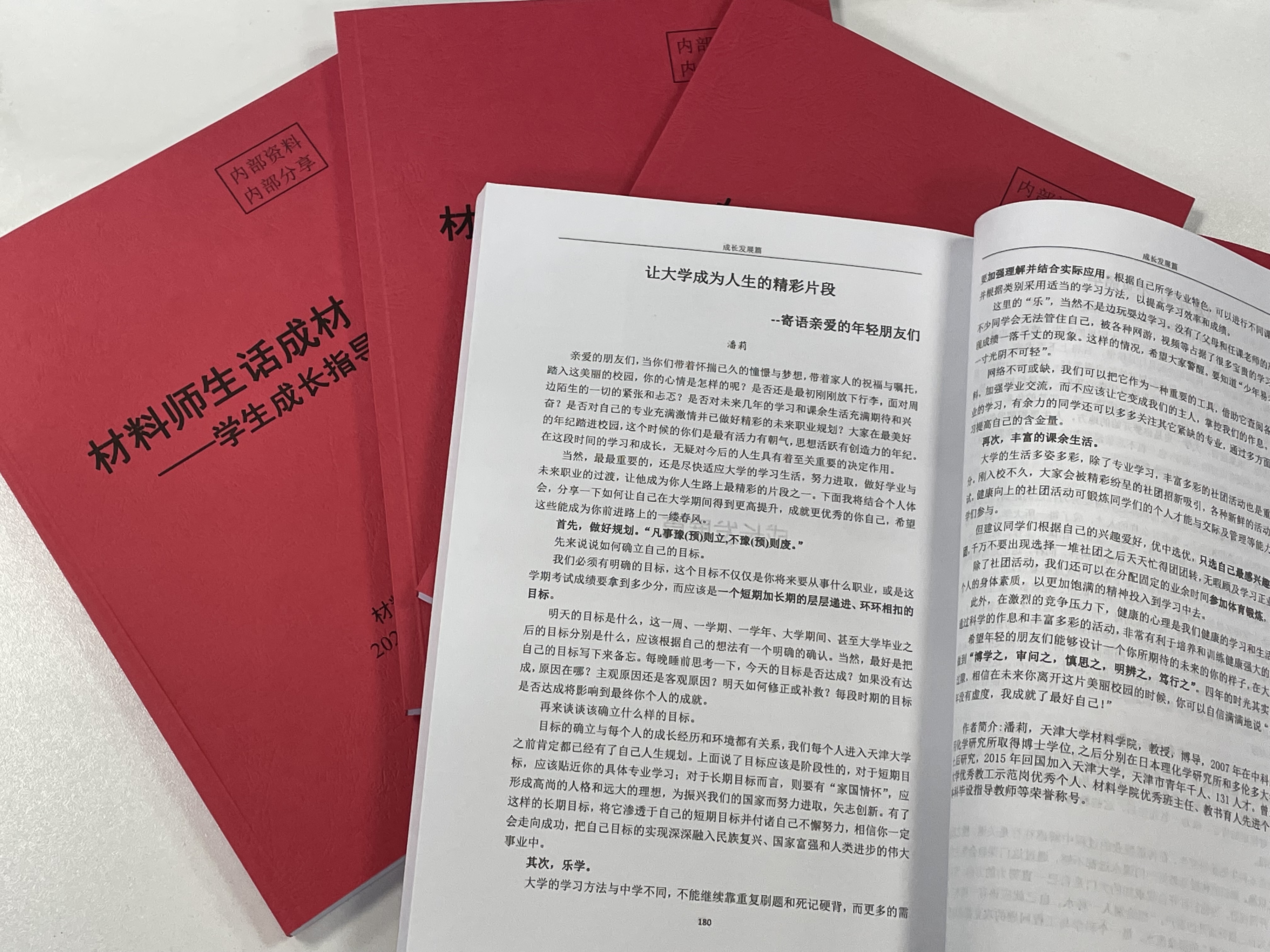 学院依托“一站式”学生社区拓宽师生交流平台,方便师生联络,配备学业辅导站、党团活动室、排练室、音乐室、健身房等,促进导师融入学生日常、全面深入学生,了解学生学习、生活、心理等方面动态,解答学生困惑诉求,潜移默化地做好引导;围绕“家国情怀”、专业认知、探索拓展、游学实践、成长发展五大板块撰写77篇优秀师生的“成材佳话”,整理排版形成14万余字的《材料师生话成材》指导用书,不仅有学生分享的成长故事,还有多位“师友导师”的育人心得,字字句句表述真情实感,为教师把握学生特点提供第一手指导资料,针对特色因材施教,筑牢培养基础、打造育人典范。学院每学期召开“师友导师”工作会、研讨交流会,依托材料学院青椒沙龙开展导师培训。2023年,学院的12名教师获评天津大学优秀“师友导师”。