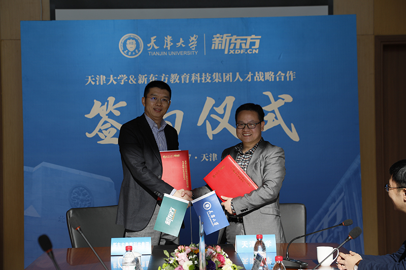 本站讯(通讯员 郑文博)12月12日,天津大学-新东方教育科技集团(简称“新东方”)校企人才培养合作签约仪式暨实习实践基地揭牌仪式在北洋园校区求实会堂201会议室举行。新东方首席财务官杨志辉,新东方助理副总裁、华北区域总裁、天津学校校长耿耿,新东方人力资源部总监邢洁,新东方华北区人力资源区域导师、天津学校人力资源部总监石力军,新东方天津学校市场营销部总监兼滨海大区运营总监王津海等出席。校党委副书记雷鸣,校友与基金事务处、学工部、理学院的有关负责同志出席。