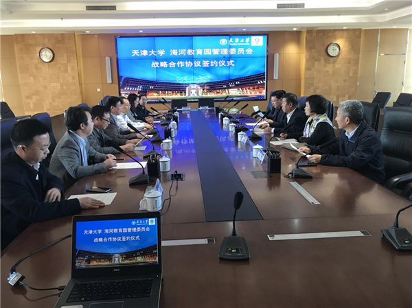王树新和刘素侠代表双方单位签署了《天津大学与海河教育园区管理委员会战略合作协议》,为天津大学与海教园的长期合作开启了新的篇章。