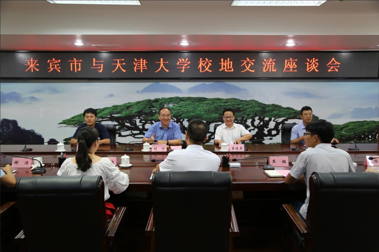 16日下午,一行到来宾市调研交流并看望暑期“励行计划”挂职实践的8名同学。市委组织部副部长陈礼锋、公务员管理科科长覃奕榕参与会见并座谈。8名同学依次汇报了本次实践的概况及工作情况,实践队受到来宾市的高度重视,成员在感受到基层工作累并快乐着的同时,坚定了自己未来的择业选择。陈礼锋对我校组织优秀学生赴来宾开展实践活动表示感谢,对同学们的实践情况充分认可,希望未来能继续与天津大学开展深入合作,也希望实践队的同学们做好来宾的代言人。刘宁勉励同学们要以实践中接触的一线干部为榜样,为基层工作贡献力量。