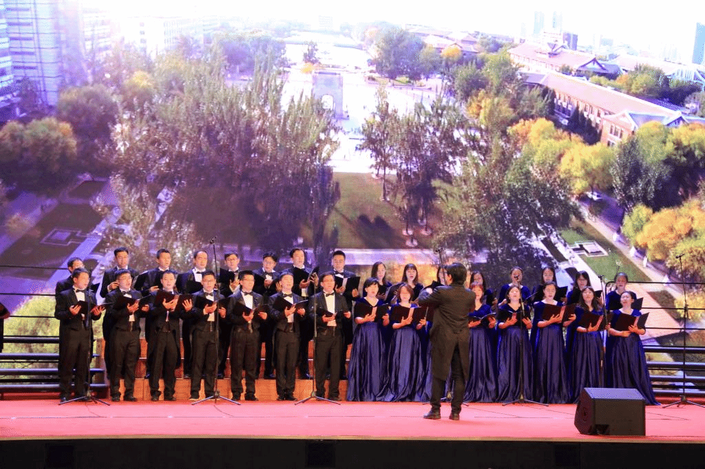教职工们在嘹亮的歌声中回顾历史、憧憬未来,展现出昂扬的精神状态。校领导与全体教职工合唱《我和我的祖国》《歌唱祖国》等歌曲,将活动推向高潮。