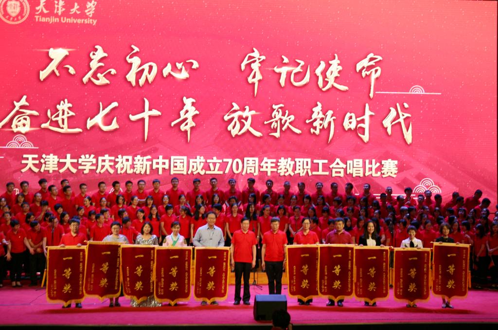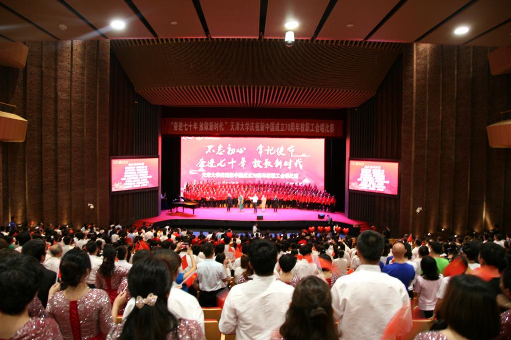 本站讯(通讯员 滕达)沧桑巨变七十载,砥砺前行向未来。9月12日,天津大学庆祝新中国成立70周年教职工合唱比赛在北洋园校区求实会堂隆重举行。校党委书记李家俊,校长金东寒,校领导孙广平、雷鸣、张凤宝、赵美蓉、巩金龙、张力新、刘宁、贾启君出席活动,由各院级工会组成的30支队伍、1800名教职工参加了活动。本次活动由党委宣传部、党委教师工作部、校工会联合举办,由各院级党组织书记或工会主席担任评委。