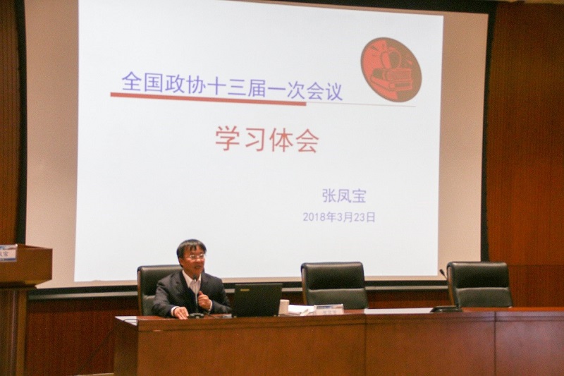 本站讯(通讯员 周静)为学习贯彻全国两会精神,4月13日,综合服务大厅党支部学习教育专题讲座在北洋园校区行政服务中心一层报告厅举行,天津大学副校长张凤宝受邀作了题为《全国政协十三届一次全体会议学习体会》的专题讲座。党办校办、后勤保障部、基建处、资产处、教务处、信网中心等多个党支部聆听了讲座。
