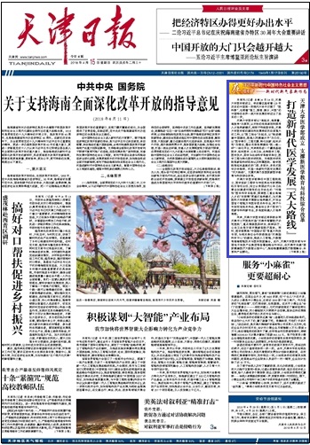 天津日报:http://epaper.tianjinwe.com/tjrb/html/2018-04/15/content_1_4.htm?from=groupmessage&isappinstalled=0
