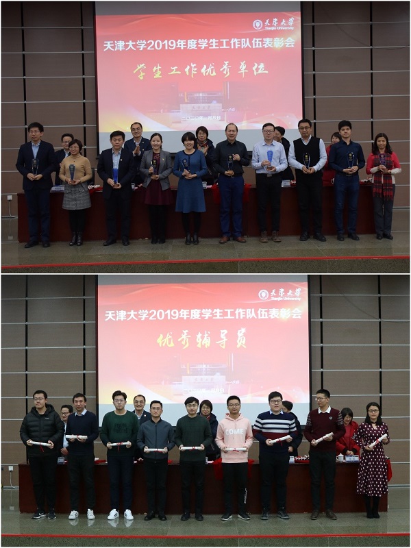大会对获得2019年度学生工作各项荣誉的集体和个人进行表彰,校党委副书记雷鸣、区域发展研究院党工委书记王寒、学工部部长赵欣、校团委书记管虹、军民融合技术研究院副院长肖述虎为获奖单位和个人颁发奖杯和证书。大会授予精仪学院、建工学院、建筑学院、化工学院、经管学部、理学院、药学院、法学院、马克思学院、数学学院十个学院(部)“学生工作优秀单位”荣誉称号;授予机械学院赵欣等49名同志、学工部张天莹等11名同志“优秀辅导员”荣誉称号,授予机械学院魏天元等16名同志 “最佳新人奖”。大会还表彰了2019年度就业工作标兵单位、就业工作先进个人、十佳学生工作案例、优秀学生工作论文、辅导员单项工作先进个人等。