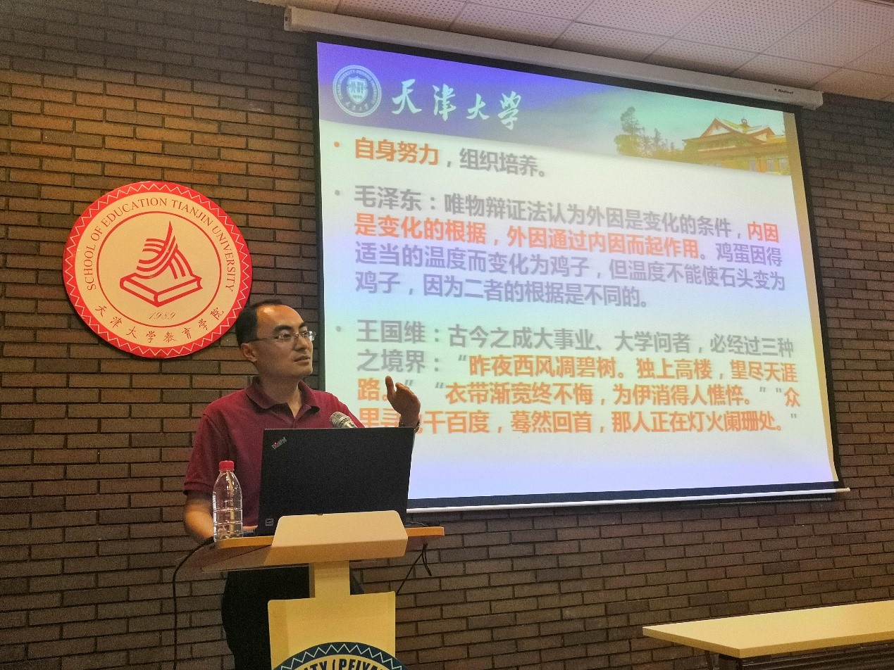 6月13日晚,在北洋园校区33教127报告厅,校党委学工部部长、学生处处长赵欣以“从习近平总书记系列重要讲话中谈干部工作思路”为主题,开展党性教育。他谈到,大家一定要按照习近平总书记好干部的五条标准“信念坚定、为民服务、勤政务实、敢于担当、清正廉洁”鞭策自己,做到“德才兼备、以德为先”,扣好工作生涯的第一粒扣子。他勉励大家在基层工作中要做到安下心来,专心致志,要时刻保持昂扬向上的学习劲头,注重平时的积累与实践,加强岗位职责所必备的知识储备,练就工作制胜的“看家本领”,结合各地方、各岗位的实际情况,勤于思考,加强研究,进一步增强工作的前瞻性、主动性、针对性。