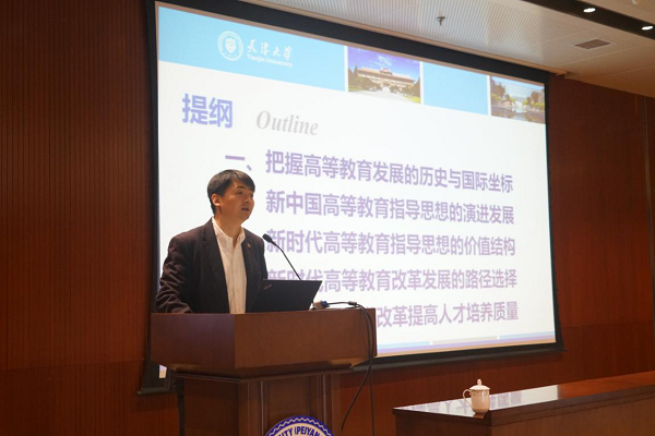 巩金龙从把握高等教育发展的历史与国际坐标、新中国高等教育指导思想的演进发展、新时代高等教育指导思想的价值结构、高等教育改革发展的路径选择、深化教育教学改革提高人才培养质量五个方面展开论述。他与大家一同回顾了世界高等教育发展史,特别是梳理了新中国高等教育改革发展的壮丽行程,共同感悟中国共产党人“为中国人民谋幸福,为中华民族谋复兴”的初心和使命。他强调,精准把握新时代高等教育指导思想的价值结构和内涵特质,将思想转变为行动的力量,对于建设高等教育强国具有重要意义。