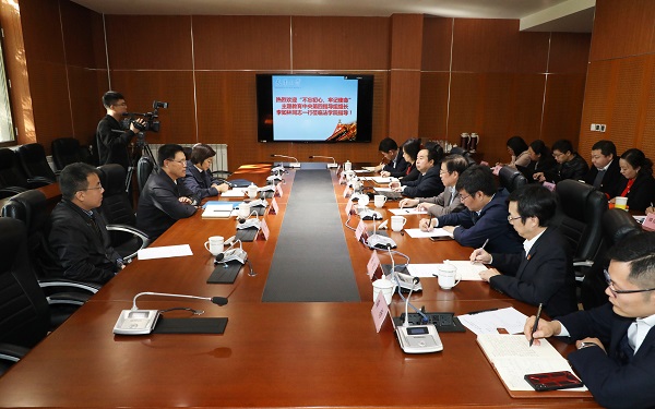 站讯(记者赵晖 摄影唐蒙)10月31日上午,中央“不忘初心、牢记使命”主题教育第四指导组组长、最高人民检察院原副检察长、党组成员李如林深入天津大学法学院调研督导主题教育活动。督导组成员沈群英、薛峰参加调研。天津大学党委书记、主题教育领导小组组长李家俊,天津大学党委常委、组织部部长、主题教育领导小组办公室副主任贾启君,法学院院长孙佑海,法学院党委书记杨欢,法学院教工党支部、学生党支部的书记和部分成员参加调研座谈会。
