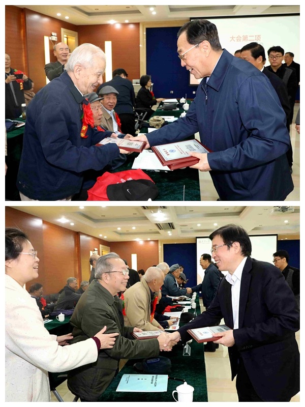 为了感谢长期以来在关工委工作岗位上默默耕耘的老同志们,天津大学党委特向老同志们颁发荣誉证书。与会领导走到老同志面前为他们颁发证书,感谢他们多年来在关心下一代的舞台上发挥育人作用,以老有所为精神促进青年学生成长。