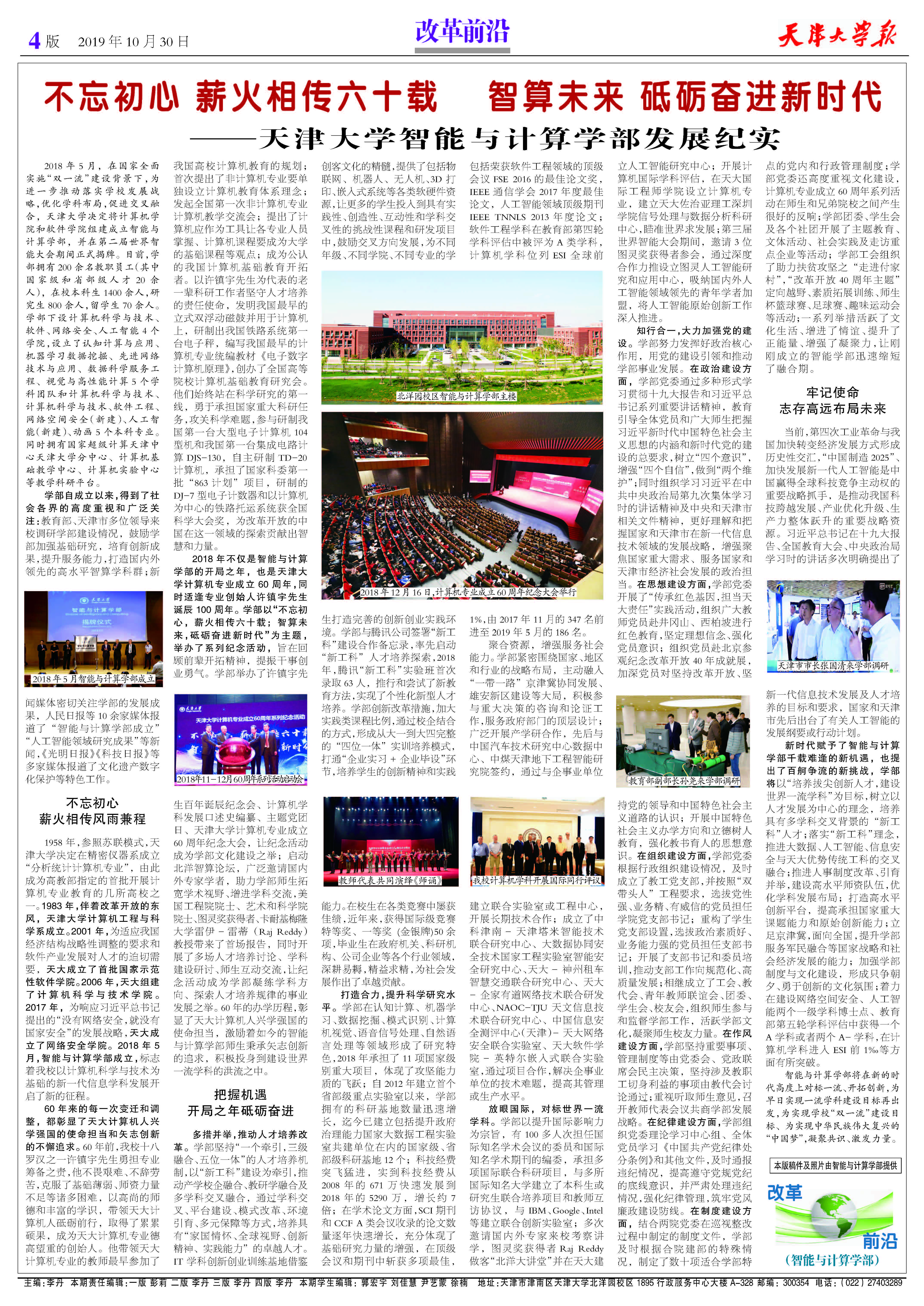 智算未来 砥砺奋进新时代 —— 天津大学智能与计算学部发展纪实