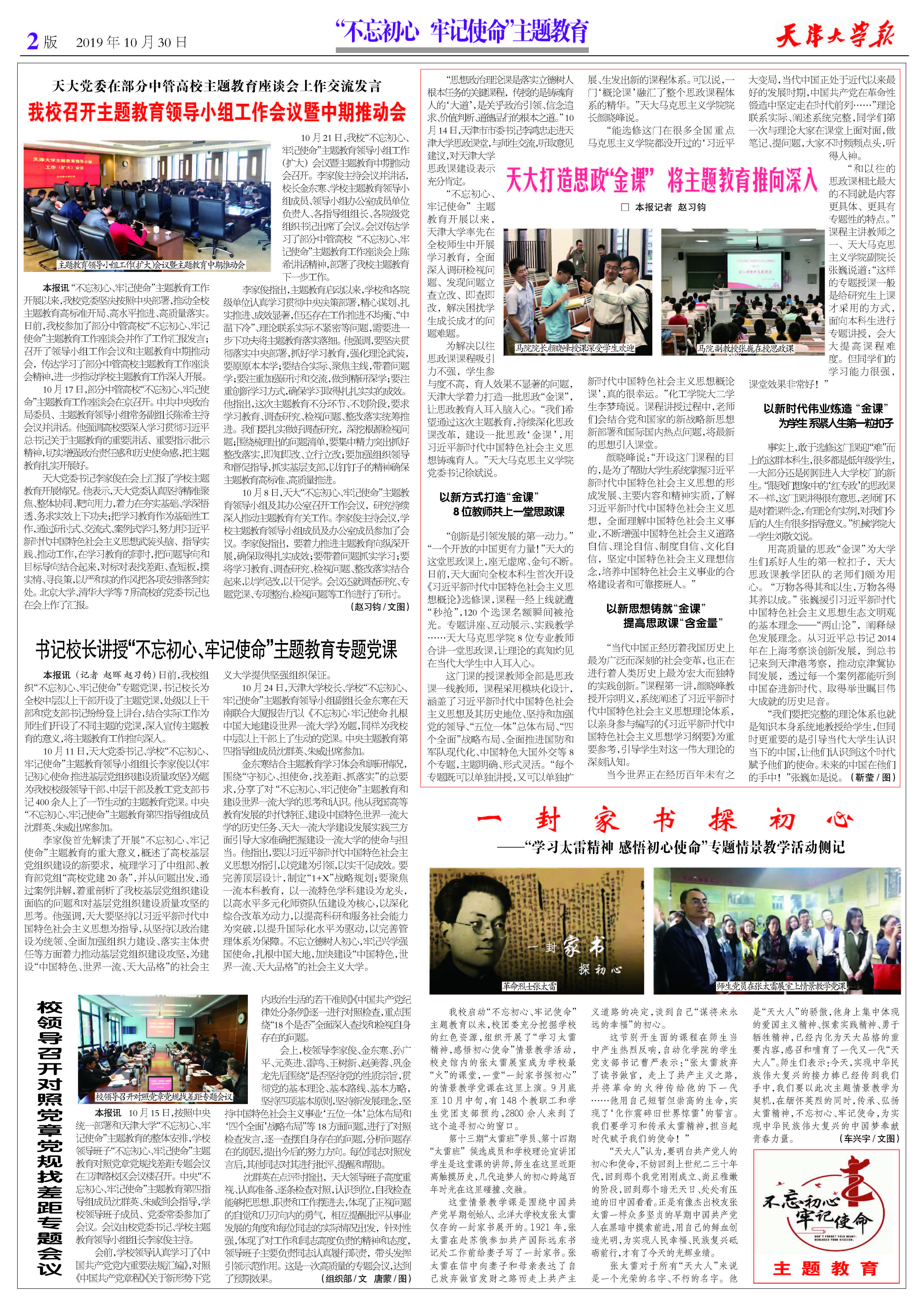 ● 天大打造思政“金课” 将主题教育推向深入