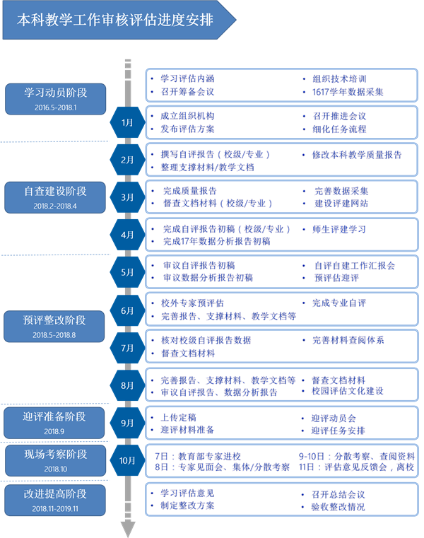 二是加强顶层设计。全校上下要深入谋划,周密部署,确保各项工作稳步推进。校级审核评估工作领导小组负责学校审核评估工作的领导、组织实施;审核评估工作办公室具体开展审核评估工作的计划、研究、组织指导、协调、监督、材料汇总审查等,负责专家进校考察活动的协调工作,促进学校日常质量保障工作与审核评估工作的有机结合与整体优化。各院级单位也应参照组建院级审核评估工作小组,负责本单位的审核评估准备工作。要做好任务分解,明确责任。审核评估不是某一个部门的工作,学校各个部门都要承担起自己的工作职责,要精心组织、各负其责、主动协同、认真落实、通力协作、确保审核评估高标准、高质量地顺利开展。要加强宣传报道,让师生充分了解学校审核评估的进程。