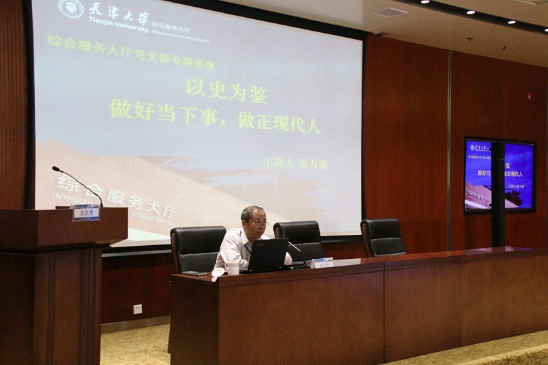 本站讯(通讯员 冯禹阔 周静)5月25日,综合服务大厅党支部主办的2018年第三期机关党员大讲堂在北洋园校区行政服务中心一层报告厅举行,天津大学党委常委、校长助理张力新受邀作了题为“以史为鉴,做好当下事,做正现代人”的专题报告,党办校办、人事处、保卫处、后勤保障部、基建处、资产处等多个党支部聆听了讲座。