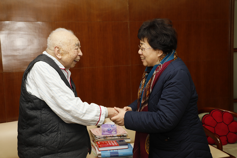 “我代表市委、市政府向您拜年,希望您保重身体,祝您身体健康!”曹小红与余国琮亲切交谈,了解了他的身体和工作情况。在听到余国琮在养病之余仍然坚持工作、整理研究成果时,曹小红表示,余院士的敬业精神让人敬佩,拥有像余院士这样的科学家是天津大学的荣耀。李家俊向曹小红介绍了余国琮团队近期出版的《化工计算传质学》《精馏过程理论》等理论研究著作的相关情况。余国琮及其长子余晓明对所有前来看望的领导表示感谢。