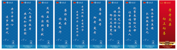 与此同时,敬老月道旗宣传作为敬老月系列活动的重要组成部分,也陆续在天津大学卫津路和北洋园两个校区的各主要道路正式展出。