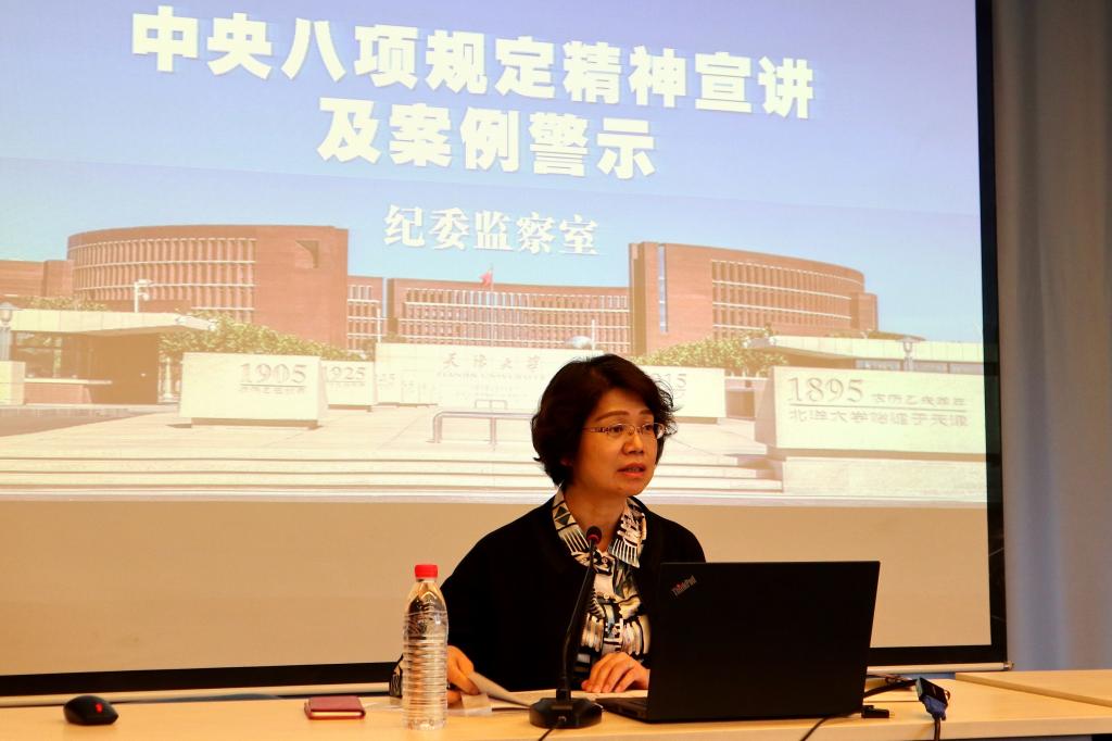 报告会上,雷书记介绍了近年来全国从严治党的成绩、经验和下一阶段的工作任务,对中央八项规定精神以及学校关于贯彻落实中央八项规定精神的有关要求进行解读。她指出校机关既是学校相关文件、有关规定的制定者,更应该是落实文件遵守规定的榜样,机关管理干部一定要结合自身工作实际,加强对党章、纪律处分条例、廉洁自律准则等党规党纪的学习,要全面了解并落实好学校近年来出台的二十余项相关制度。