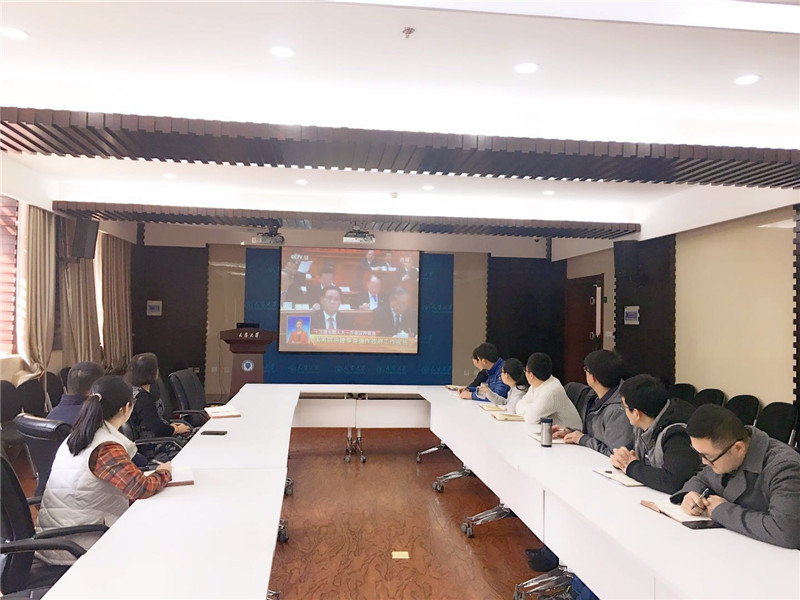 天津大学组织师生在卫津路校区、北洋园校区以及各地研究院数十个会场集体收听收看开幕会直播。部分师生自发在教室、办公室、党员活动室、学生宿舍等地通过电视、网络、广播等多种方式收听收看,认真学习领会大会精神。