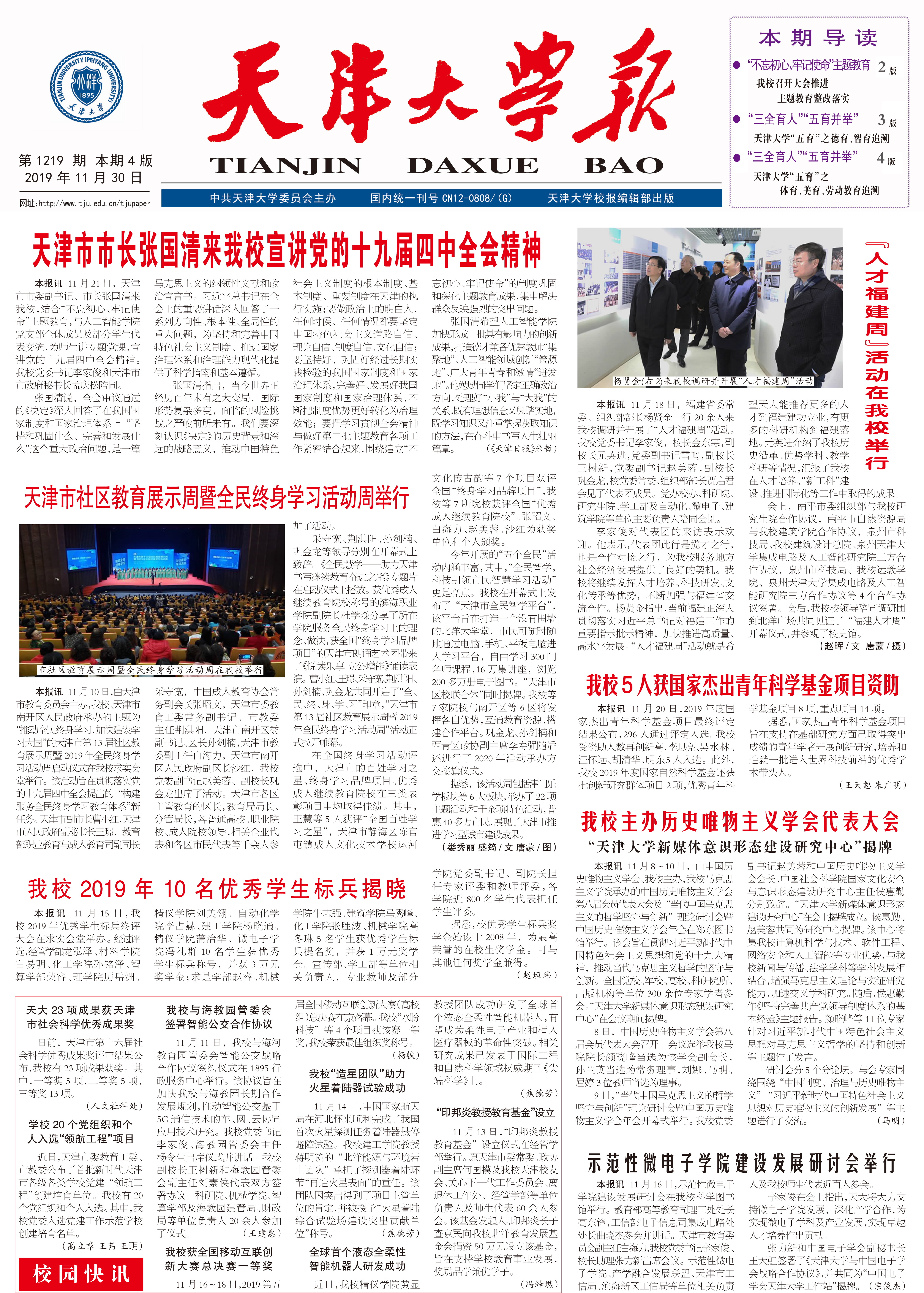 ● 天津市市长张国清来我校宣讲党的十九届四中全会精神