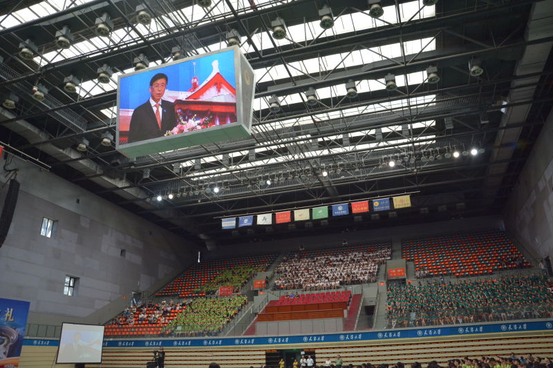 本站讯 (记者 焦德芳) 8月26日是天津大学新生开学第一天,在相隔22.5公里的北洋园和卫津路两个校区,来自全国各地的9700余名天津大学2016级本、硕、博新生参加了一场别开生面的“双向互动直播”开学典礼,亲身体验了学校“智慧校园”的魅力。