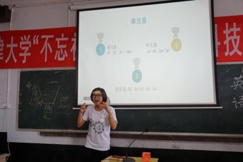 天津大学翻译硕士生齐亚同进行英语口语培训 摄影 杨健