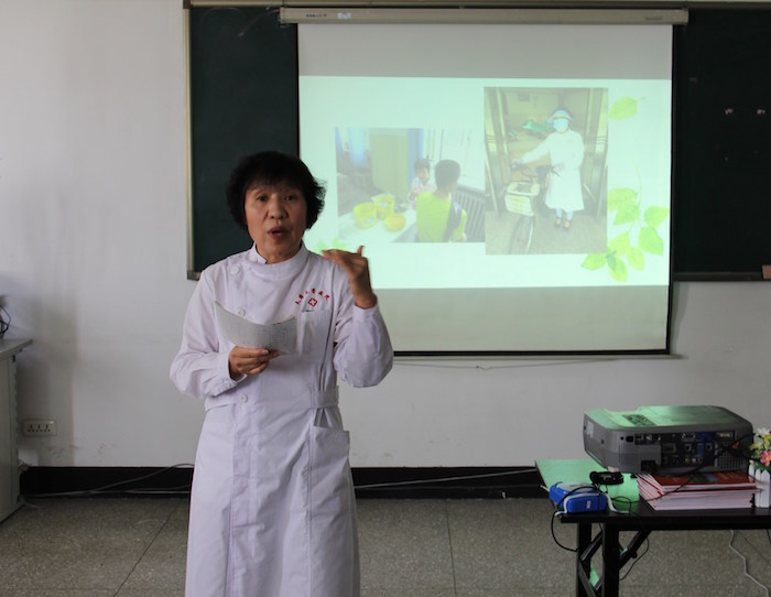 张力新在听取了演讲后表示,校医院一直在为保障师生员工的健康做出努力。他谈了对南丁格尔精神的理解即:爱、奉献和信仰。号召广大护理人员以南丁格尔精神为动力,面对医改带来的阵痛,与医院全体员工共同努力,统一思想,转变理念,最终实现医院的可持续发展,续写新篇章,再铸新辉煌。