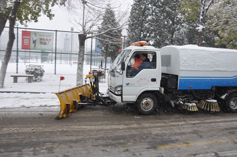 经过五个小时的努力,22日上午10时,两校区校园主要干道及重点部位积雪基本清扫完毕,食堂、门店等一直处于正常营业状态,门前三包责任区内冰雪已清理干净,为防止道路结冰,两校区累计使用融雪食盐10余吨。