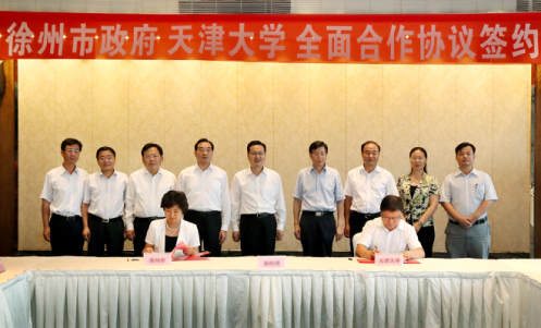 本站讯 (通讯员 党修湖)7月12日,天津大学与徐州市全面合作协议签约仪式在徐州举行。天津大学校长李家俊、副校长元英进,徐州市委书记张国华,市长周铁根,市委常委、组织部长杨时云,副市长李燕出席签约仪式。我校党办校办、组织部、科研院、研究生院、机械学院、化工学院、材料学院、环境学院、建筑规划设计总院和内燃机研究所主要负责人参加签约活动。签约仪式由周铁根主持。